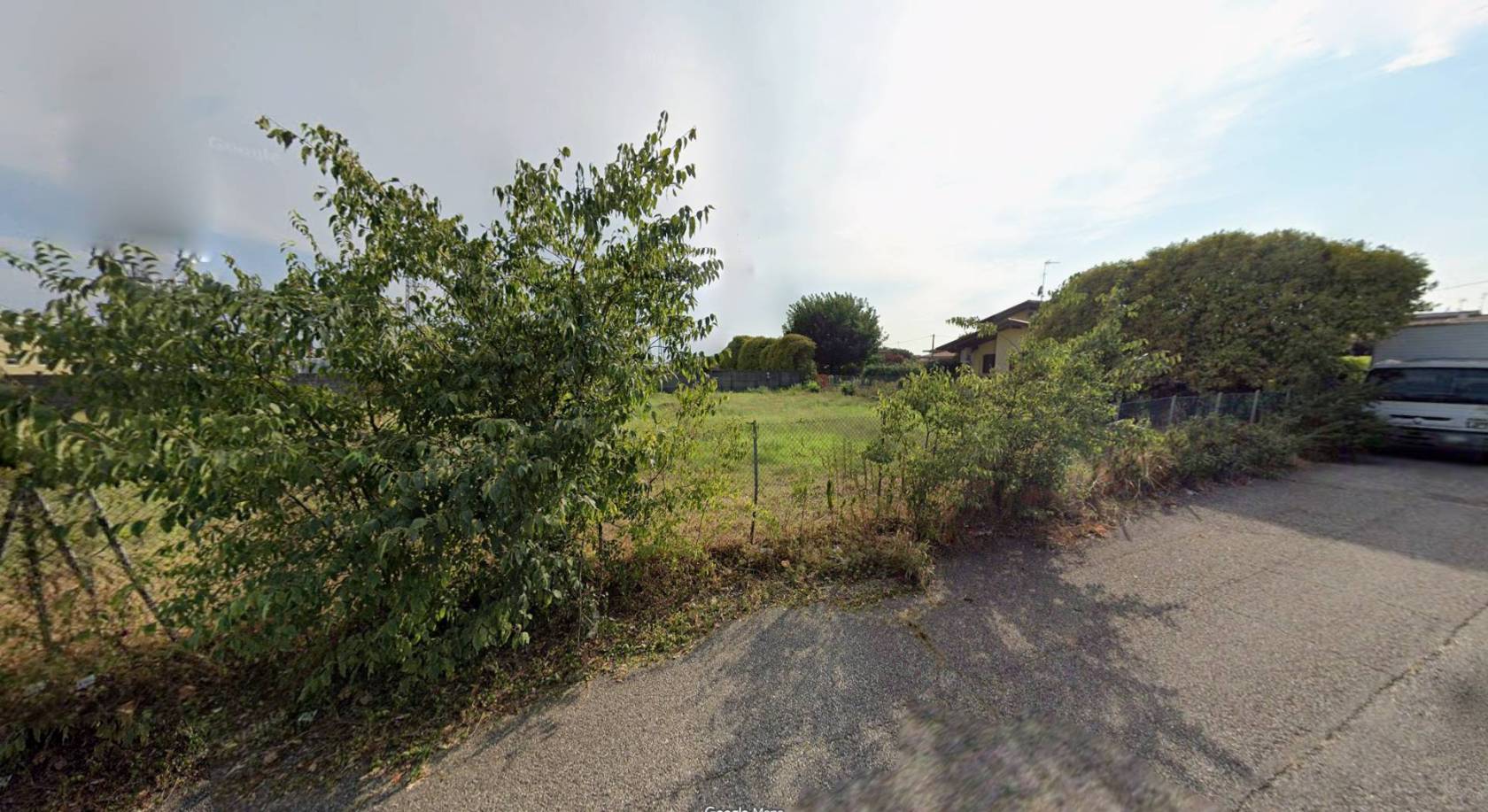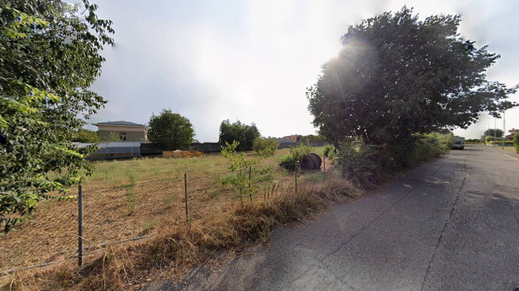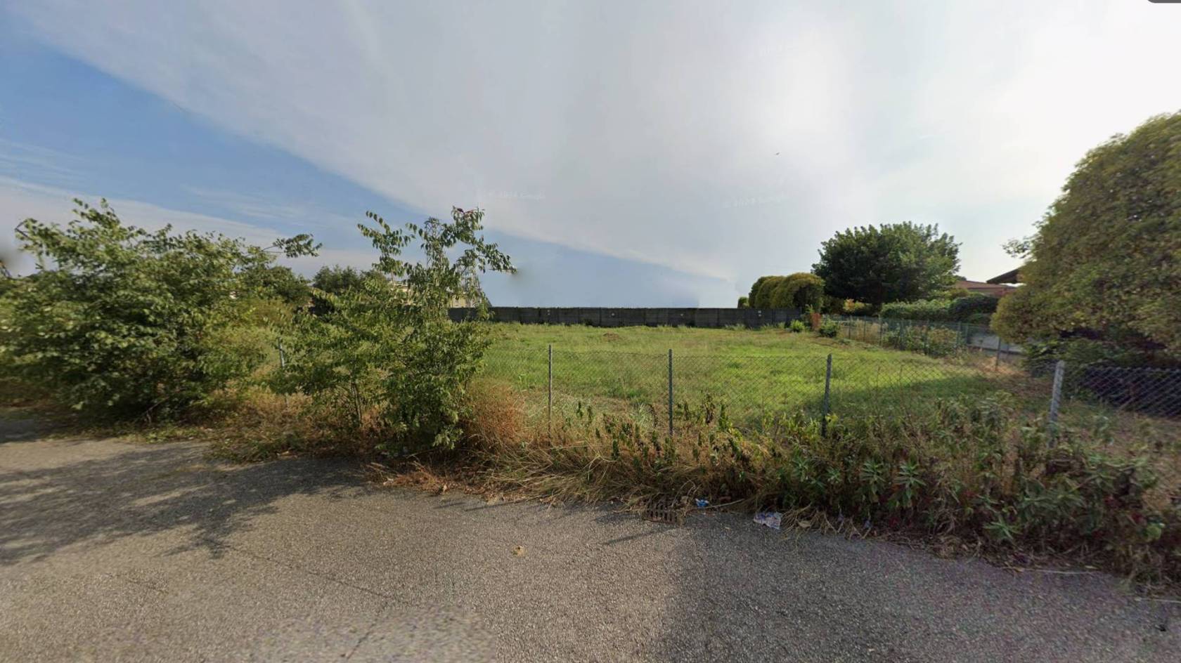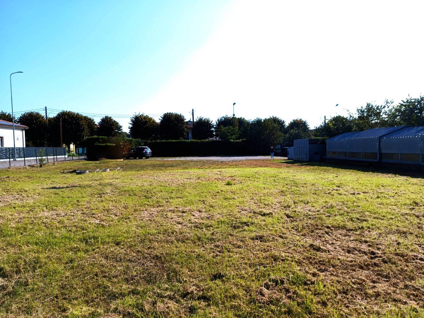 Le immagini mostrano lo stato curato del fondo erboso immerso nel verde ma inserito armoniosamente nell'ambiente urbano circostante; sono inoltre presenti alcune strutture accessorie nelle immediate vicinanze utili durante le fasi edilizie o come supporto logistico temporaneo.