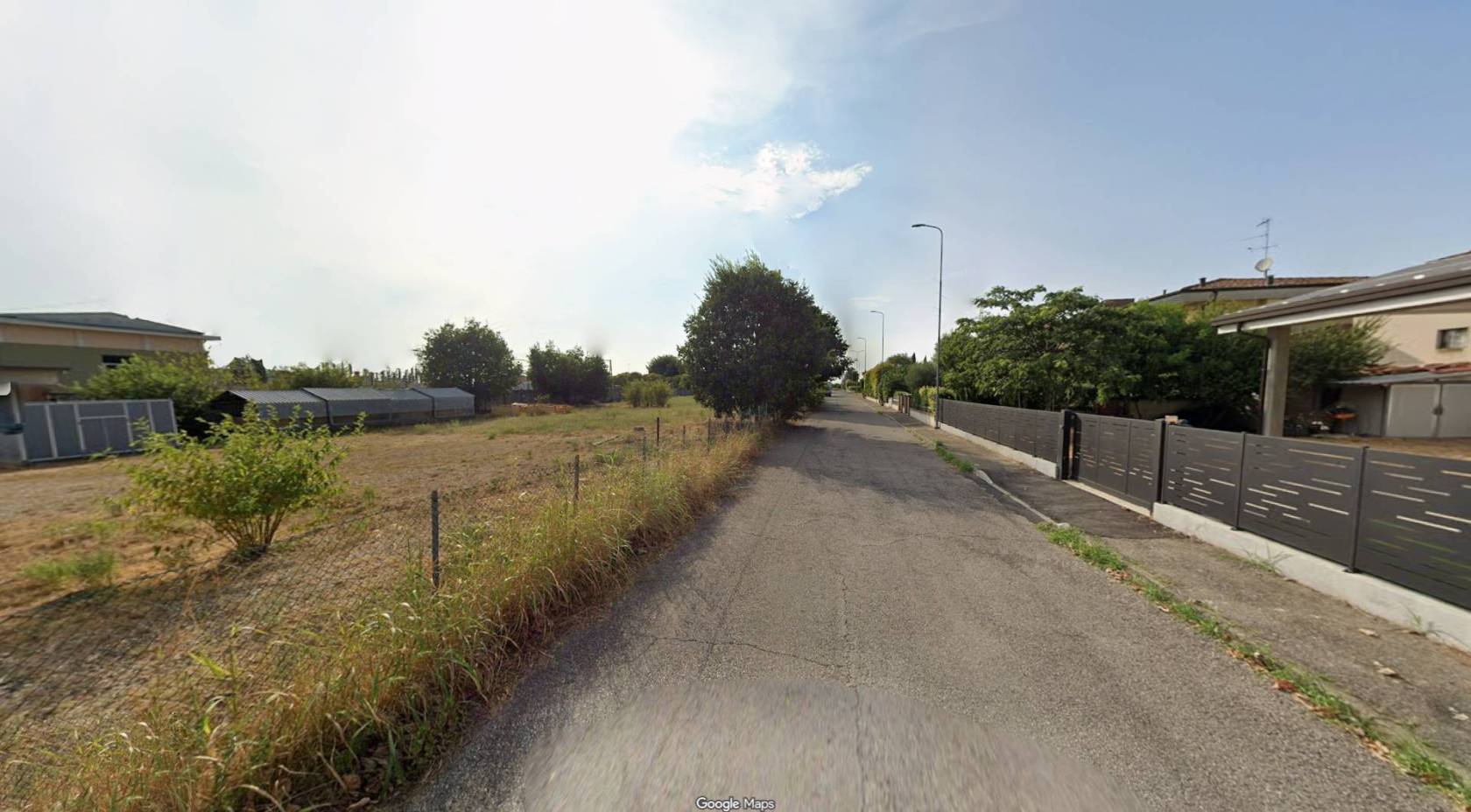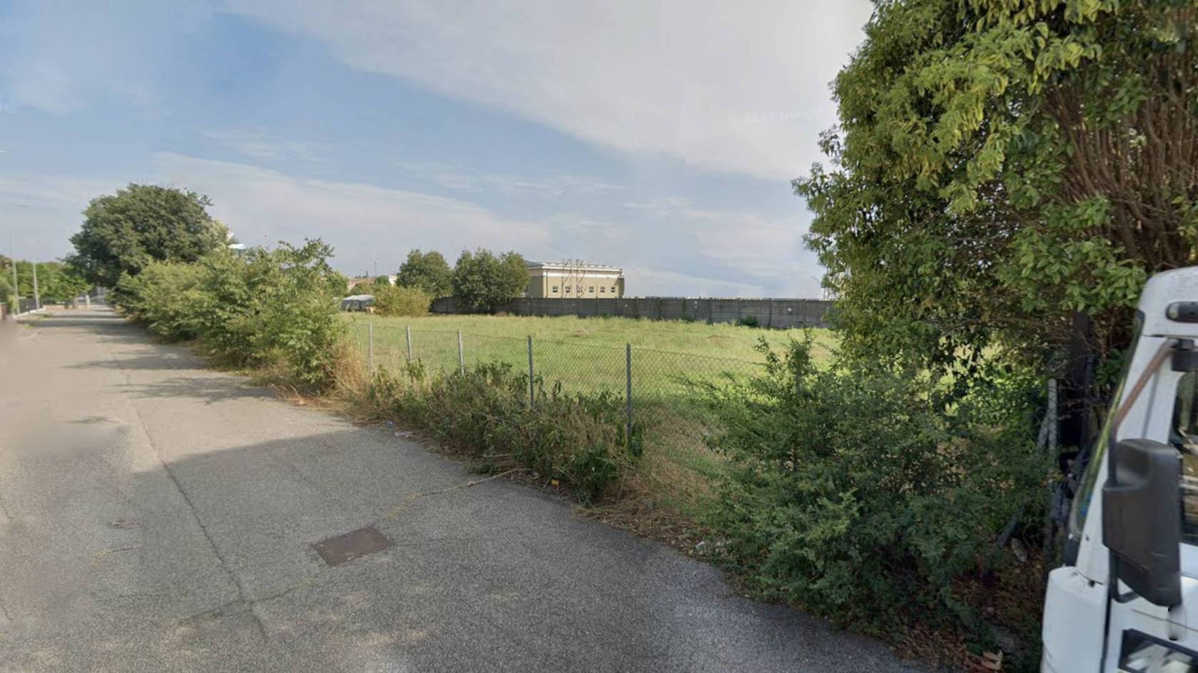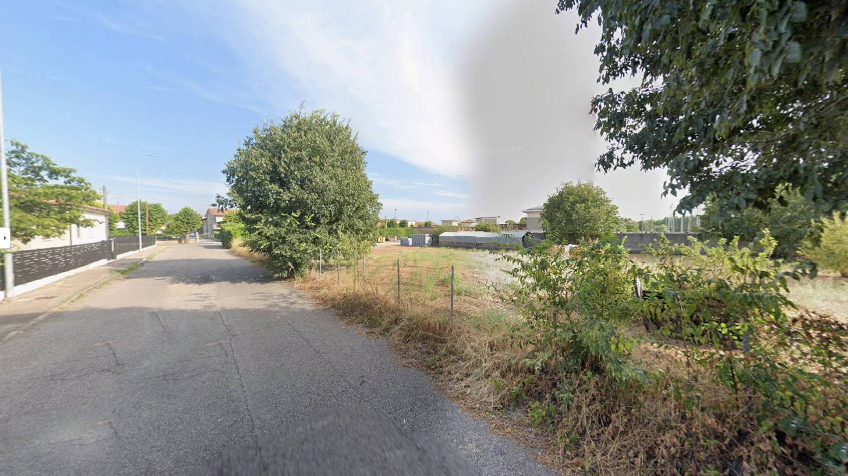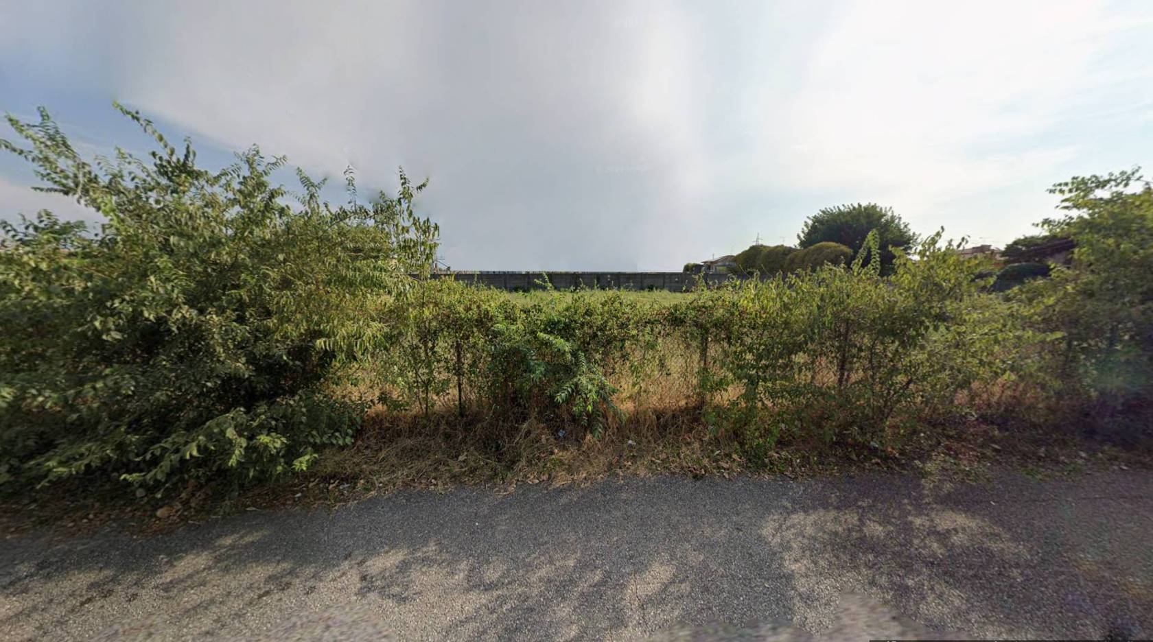 Le immagini mostrano lo stato curato del fondo erboso immerso nel verde ma inserito armoniosamente nell'ambiente urbano circostante; sono inoltre presenti alcune strutture accessorie nelle immediate vicinanze utili durante le fasi edilizie o come supporto logistico temporaneo.